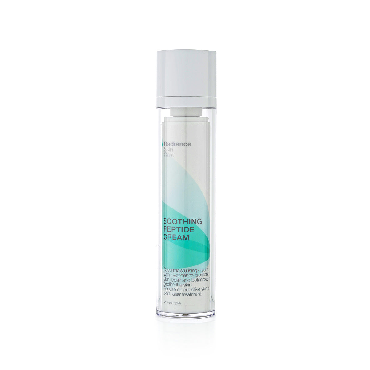 Out Soothing Peptide Cream delivers a rich moisturising and soothing effect to sensitive and very dry skin types for which retinal-based creams like our Night Retinal Cream would be too strong. This gentle, soothing cream promotes healthier, younger looking skin. Peptides stimulate cell growth in the skin, reducing inflammation of the skin, which stresses skin and ages it prematurely. botanical ingredients such as shea butter, aloe vera and sweet almond oil provide skin conditioning as well as further supporting anti-inflammatory functions.